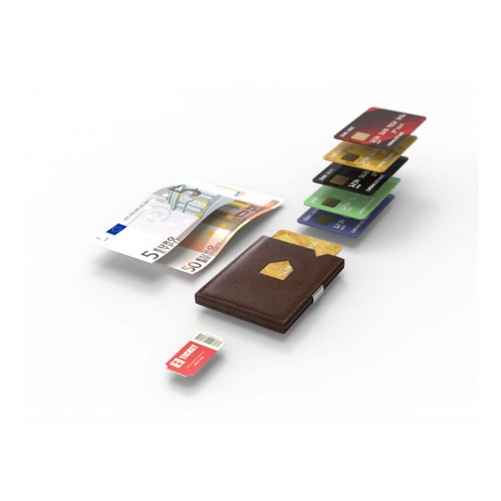 Περιέχει προστασία RFID για να διασφαλίσει ότι οι προσωπικές σας πληροφορίες και οι πιστωτικές σας κάρτες είναι ασφαλείς. Από τις έξι θήκες, οι δύο μπορούν να λειτουργήσουν ανέπαφα. Όταν το πορτοφόλι είναι κλειστό καμία κάρτα δεν λειτουργεί ανέπαφα.