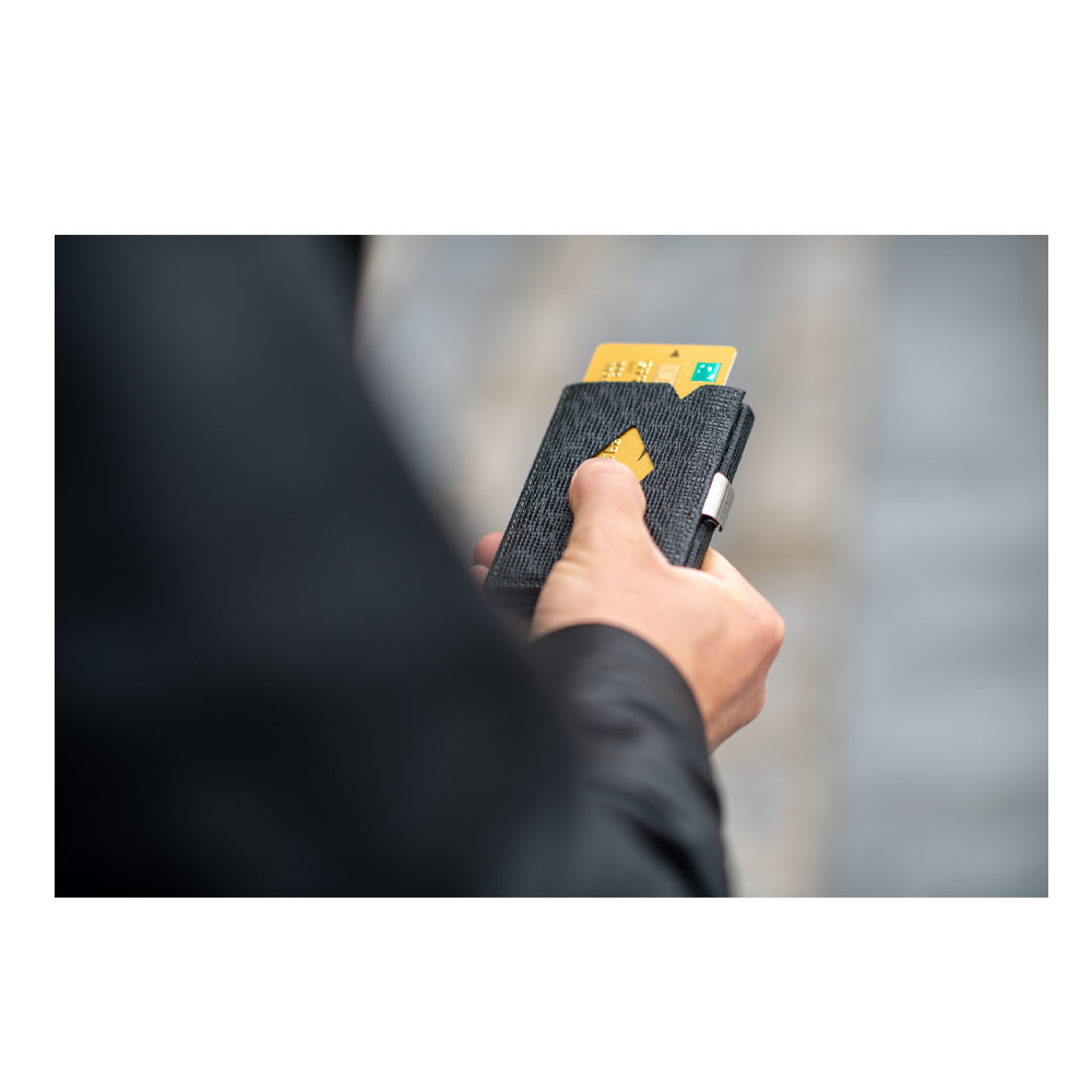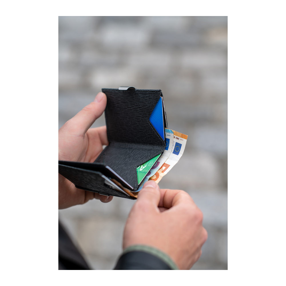Το Πορτοφόλι EXENTRI σας δίνει γρήγορη πρόσβαση στις πιο συχνά χρησιμοποιούμενες κάρτες σας, σύροντάς τες χρησιμοποιώντας τον αντίχειρά σας. Μοντέρνο, λειτουργικό και κομψό πορτοφόλι από δέρμα υψηλής ποιότητας και ανοξείδωτο ατσάλι.