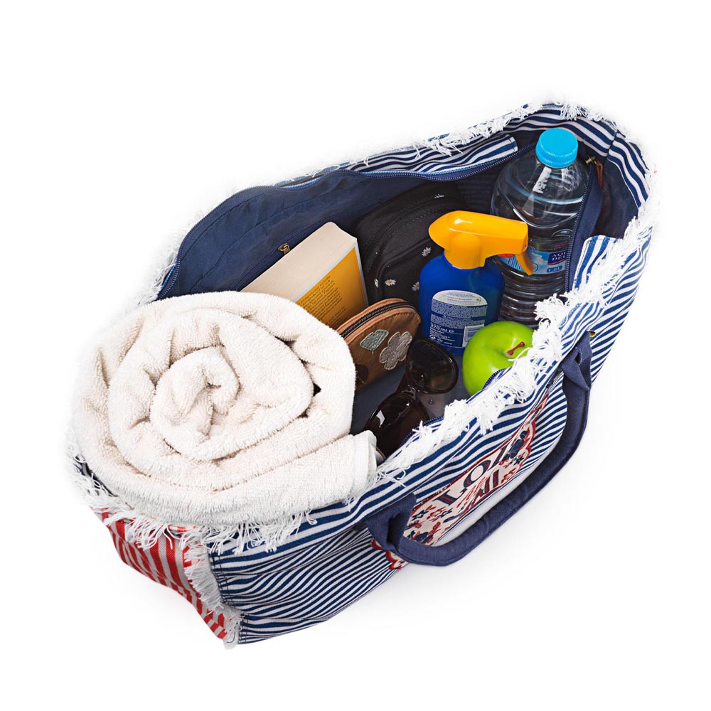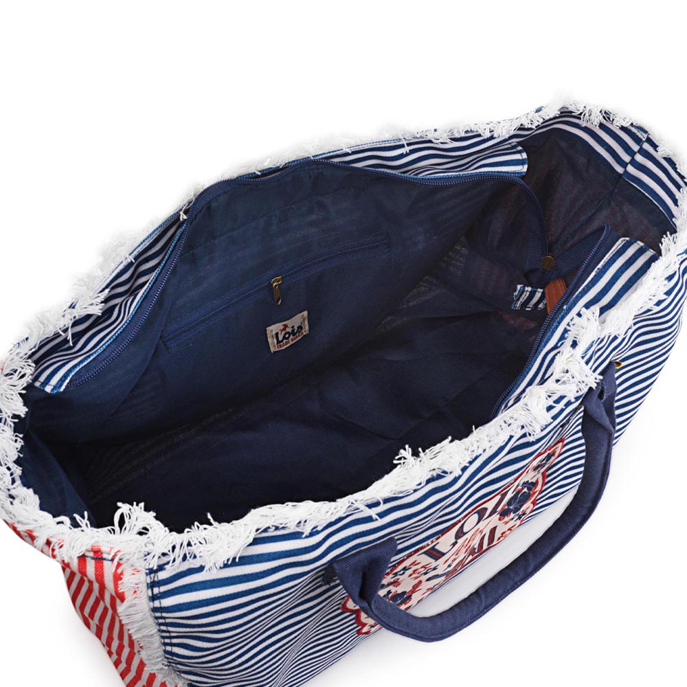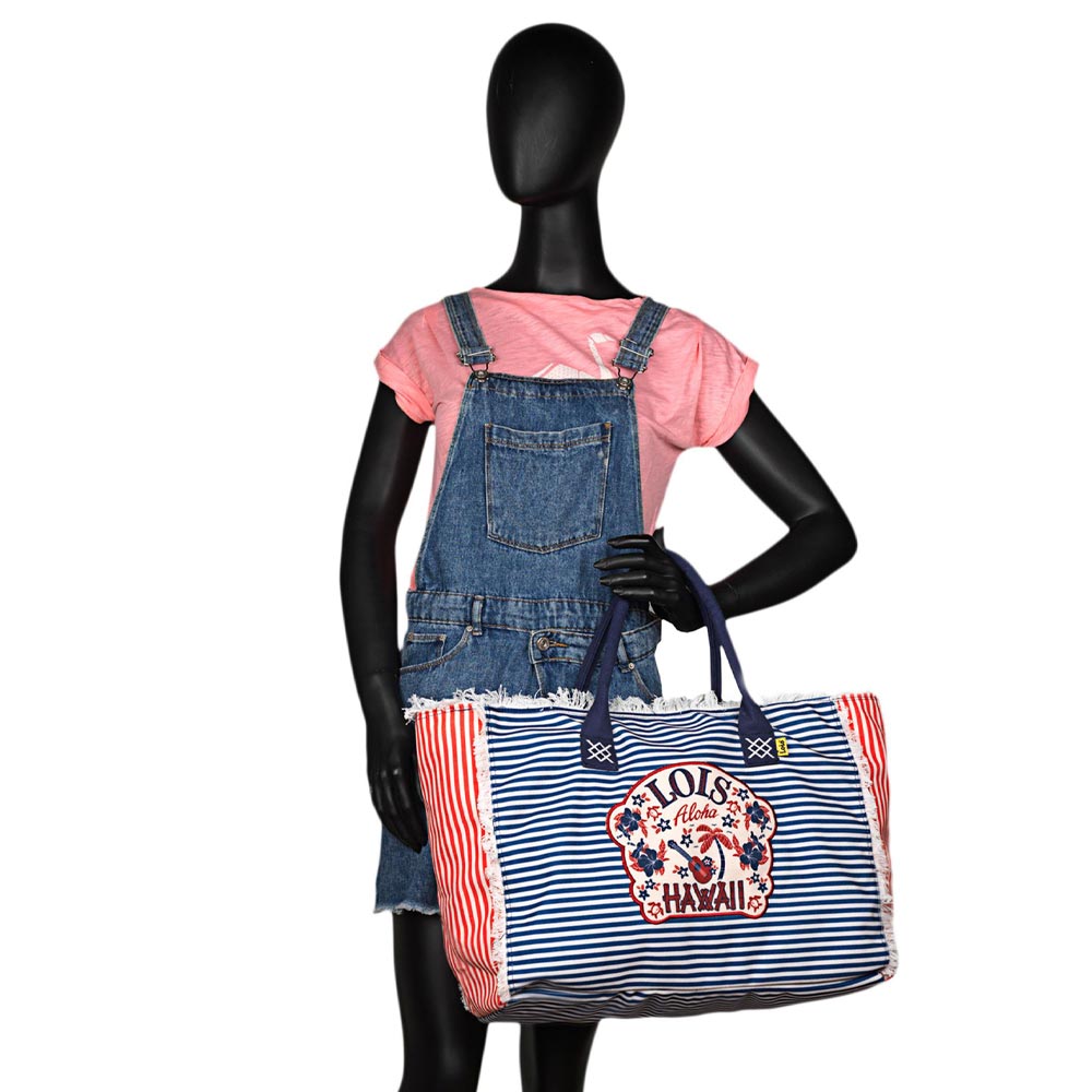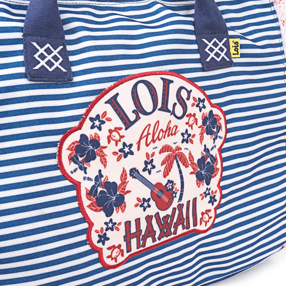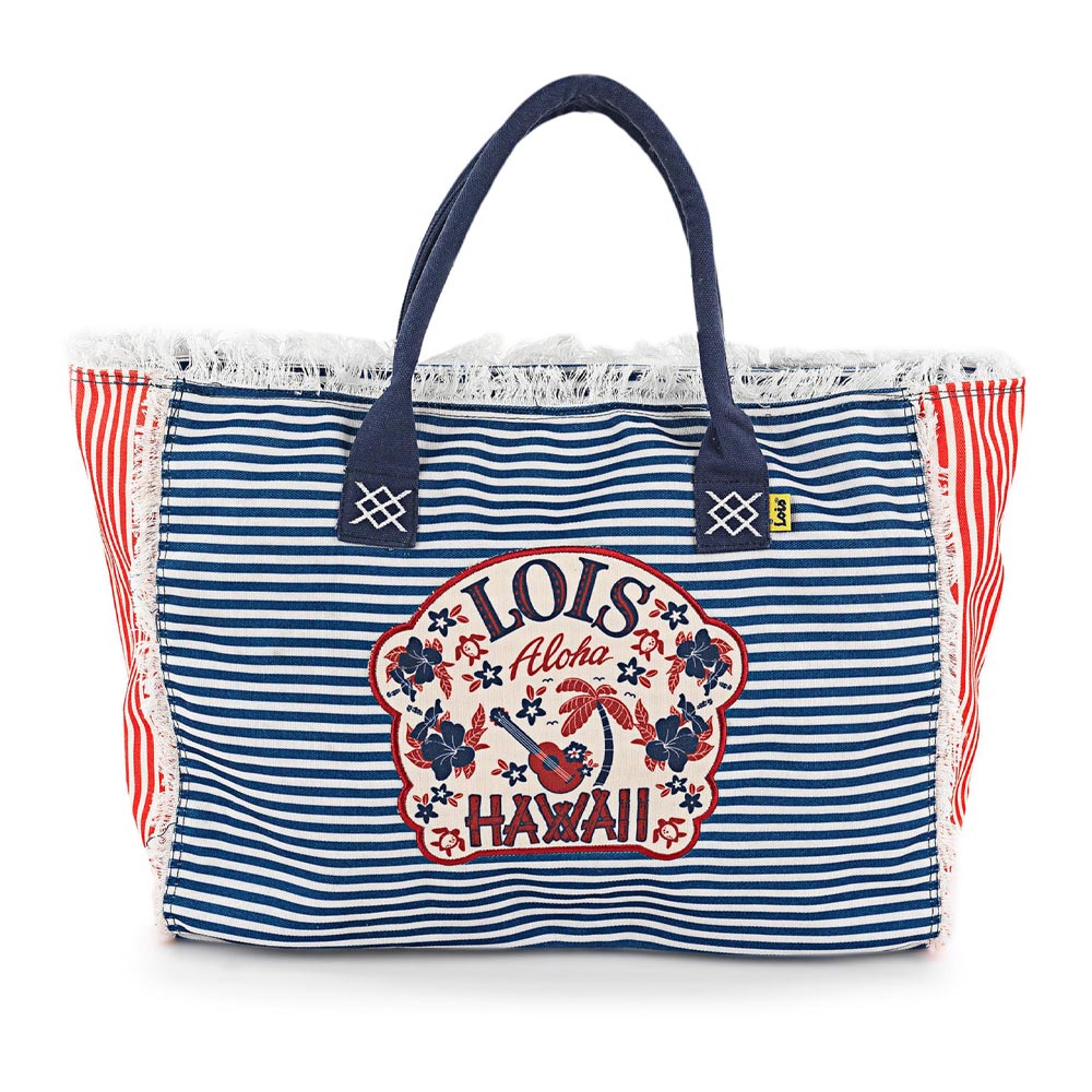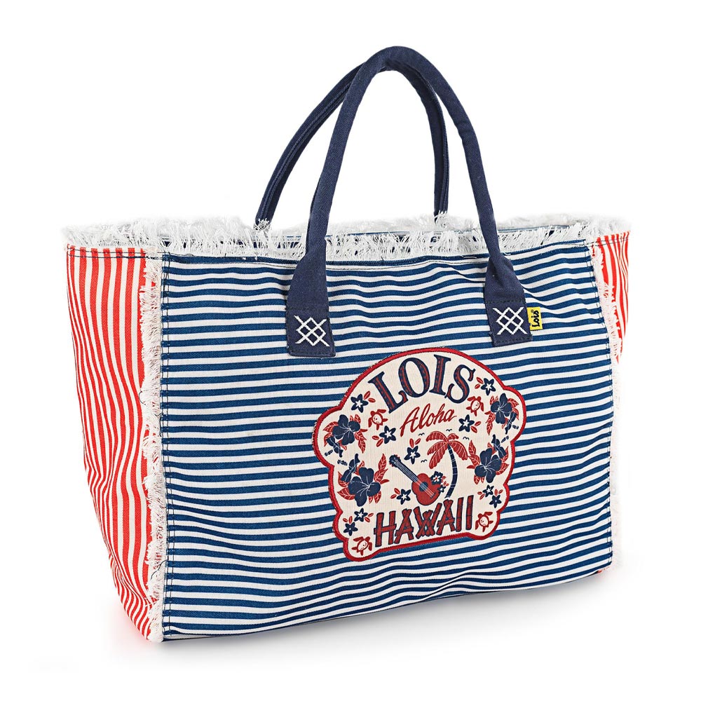 Τσάντα θαλάσσης από την εταιρεία Lois. Είναι αρκετά μεγάλη ώστε να μπορείτε να μεταφέρετε στην παραλία όλα τα απαραίτητα αντικείμενά σας.